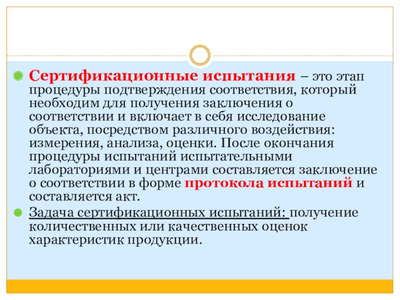 Слайд 8Сертификационные испытания – это этап процедуры подтверждения соответствия, который необходим для получения