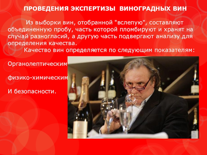 Слайд 21ПРОВЕДЕНИЯ ЭКСПЕРТИЗЫ ВИНОГРАДНЫХ ВИН