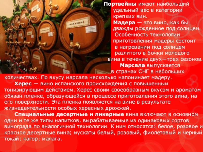 брожения сахаров виноградного сока с мезгой и содержащие 8 - 20 % спирта.