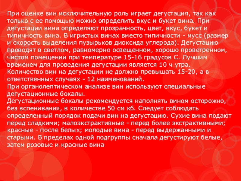 Слайд 22При оценке вин исключительную роль играет дегустация, так как только с