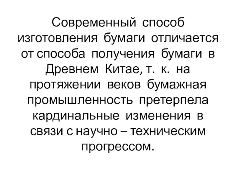 Китае, т. к. на протяжении веков бумажная промышленность претерпела кардинальные изменения в связи с научно – техническим прогрессом.