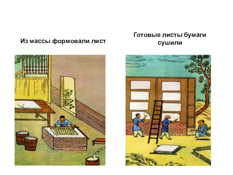 Из массы формовали листГотовые листы бумаги сушили