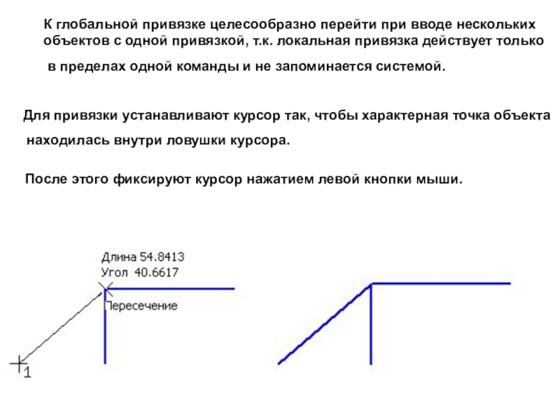 Для привязки устанавливают курсор так, чтобы характерная точка объекта