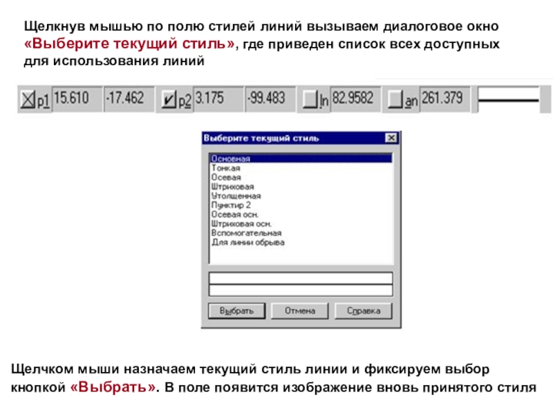 Щелчком мыши назначаем текущий стиль линии и фиксируем выбор