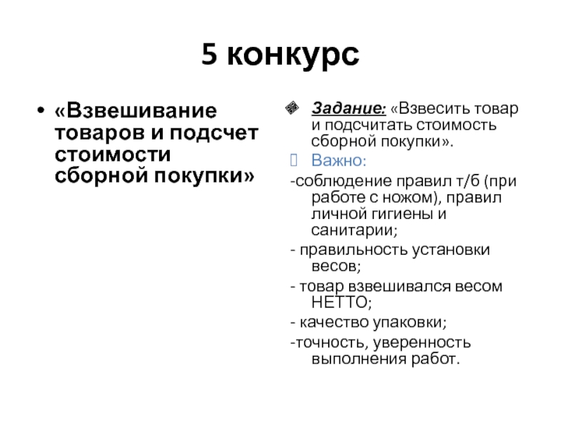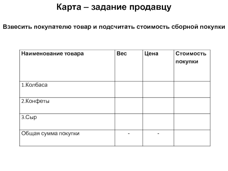 5.Взвесить товар и подсчитать стоимость сборной покупки
