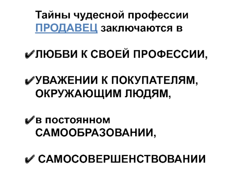 Тайны чудесной профессии ПРОДАВЕЦ заключаются в