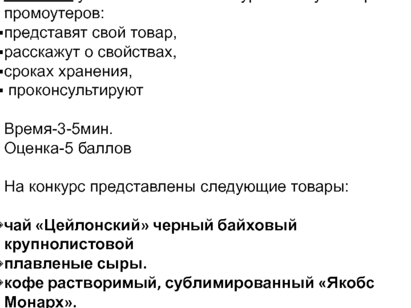 Слайд 19задание: участники в этом конкурсе выступят в роли промоутеров: