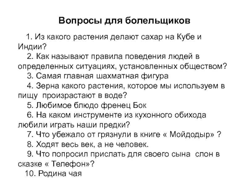 9. Что попросил прислать для своего сына слон в сказке « Телефон»?