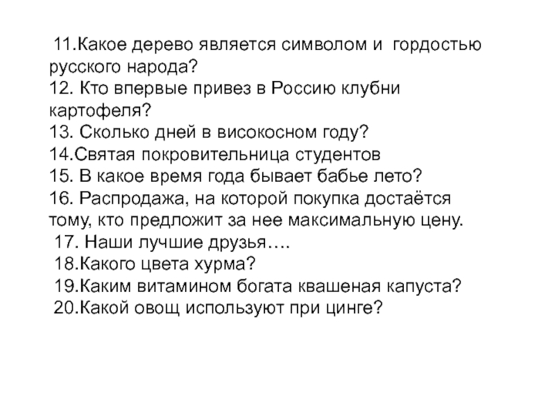 Слайд 14 11.Какое дерево является символом и гордостью русского народа?
