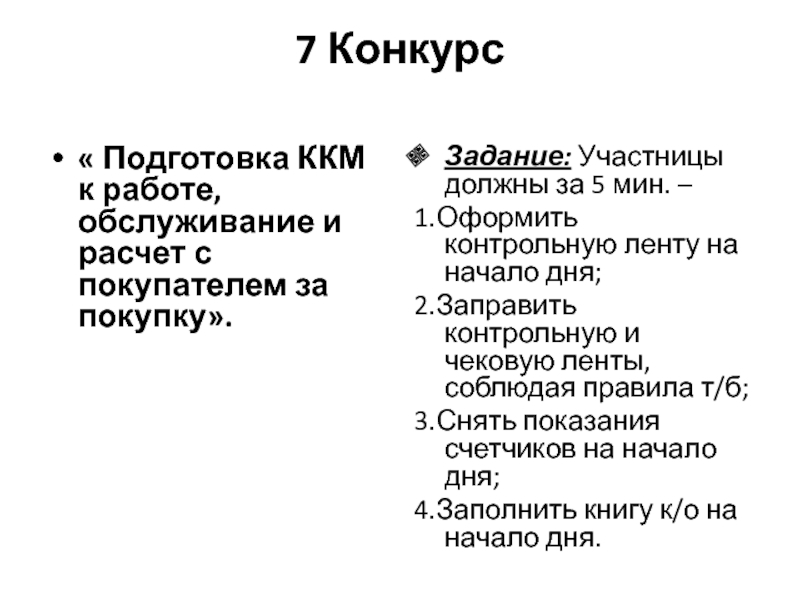 « Подготовка ККМ к работе, обслуживание и расчет с покупателем