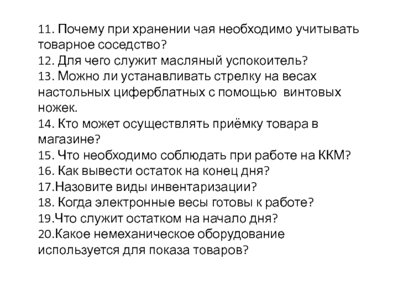 Слайд 611. Почему при хранении чая необходимо учитывать товарное соседство?