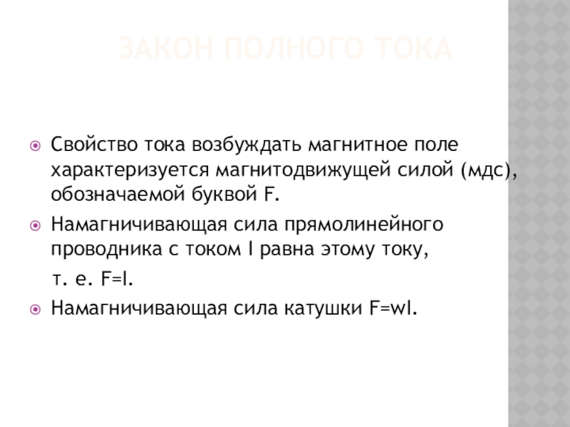 Свойство тока возбуждать магнитное поле характеризуется магнитодвижущей силой (мдс),
