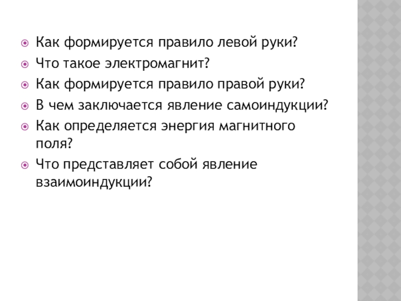 Слайд 621. От чего зависит направление силы, действующей на проводник с током,