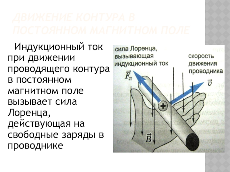 в постоянном магнитном поле вызывает сила Лоренца, действующая на свободные заряды в проводнике