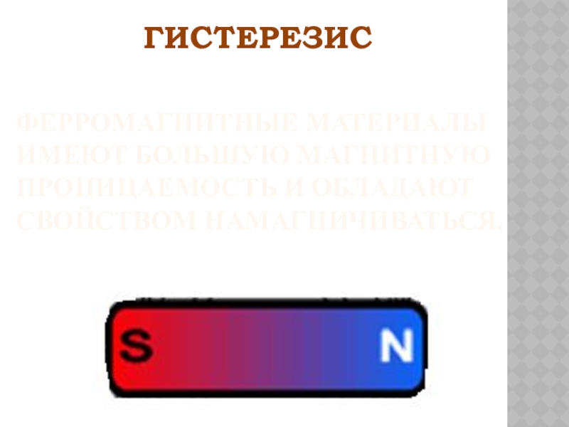 Слайд 26Ферромагнитные материалы имеют большую магнитную проницаемость и обладают свойством намагничиваться.