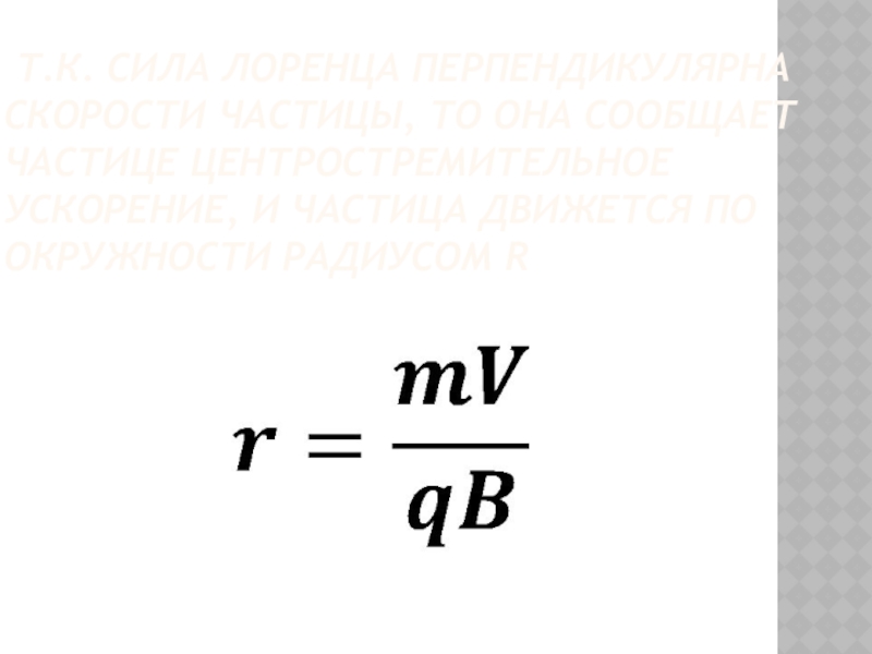 Слайд 43 Т.к. сила Лоренца перпендикулярна скорости частицы, то она сообщает частице