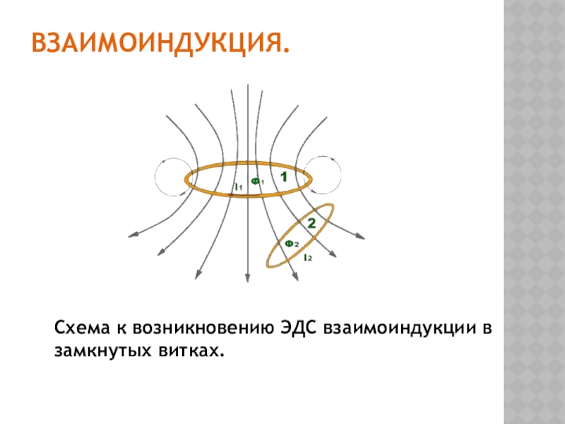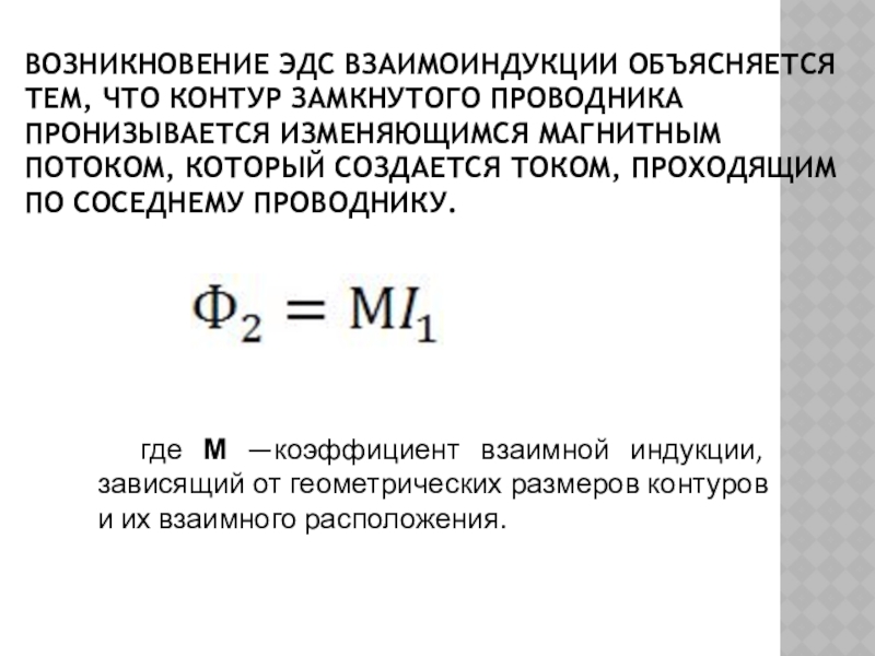 Слайд 60Возникновение ЭДС взаимоиндукции объясняется тем, что контур замкнутого проводника пронизывается изменяющимся