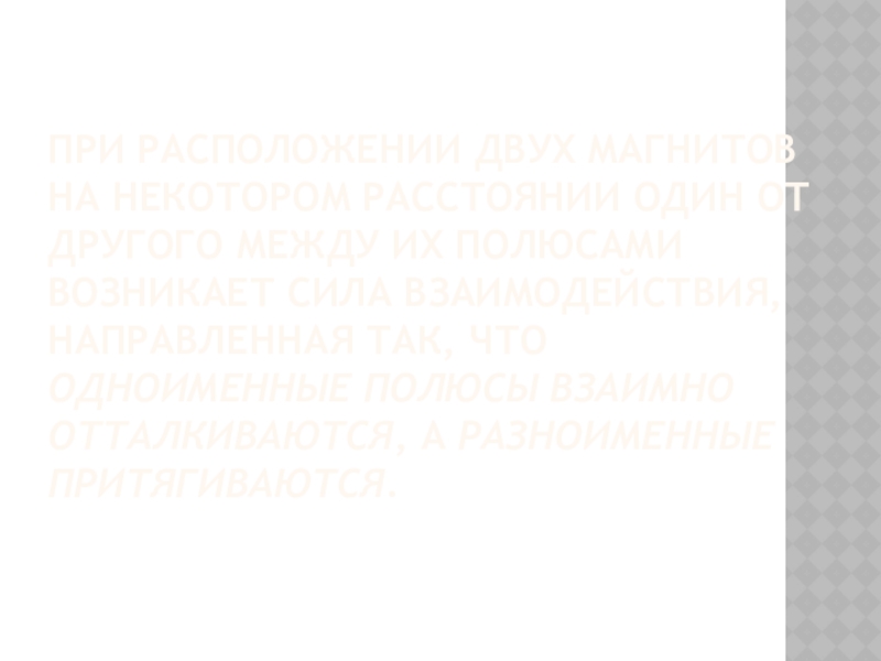 Слайд 7При расположении двух магнитов на некотором расстоянии один от другого между