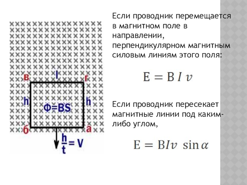 Если проводник пересекает магнитные линии под каким-либо углом,