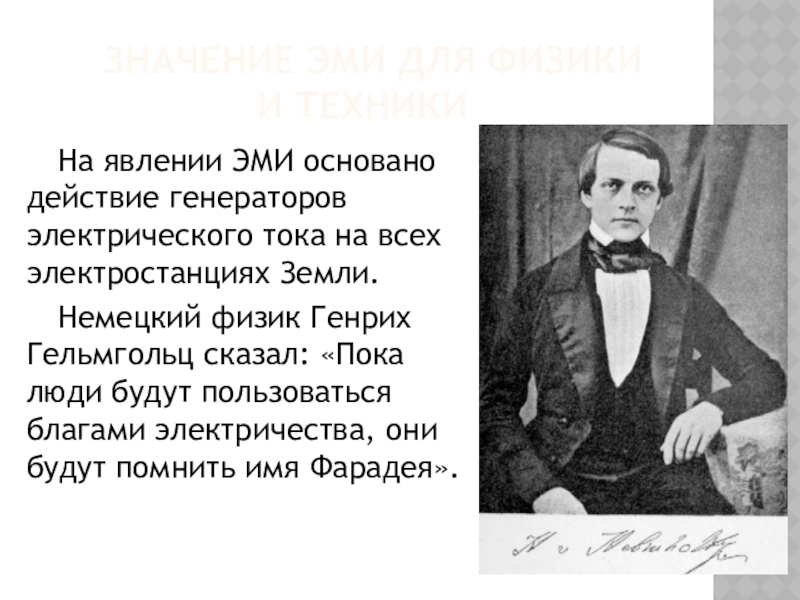 Немецкий физик Генрих Гельмгольц сказал: «Пока люди будут пользоваться благами электричества, они будут помнить имя Фарадея».