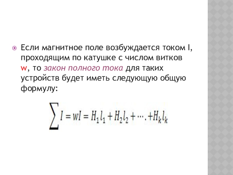витков w, то закон полного тока для таких устройств будет иметь следующую общую формулу: