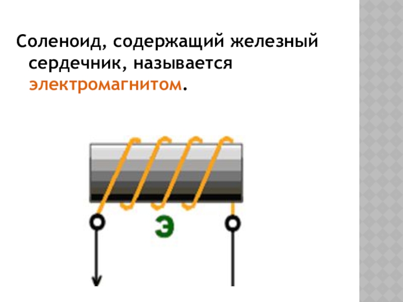 Слайд 27Соленоид, содержащий железный сердечник, называется электромагнитом.