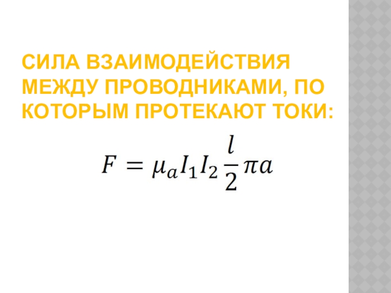 Слайд 24Сила взаимодействия между проводниками, по которым протекают токи: