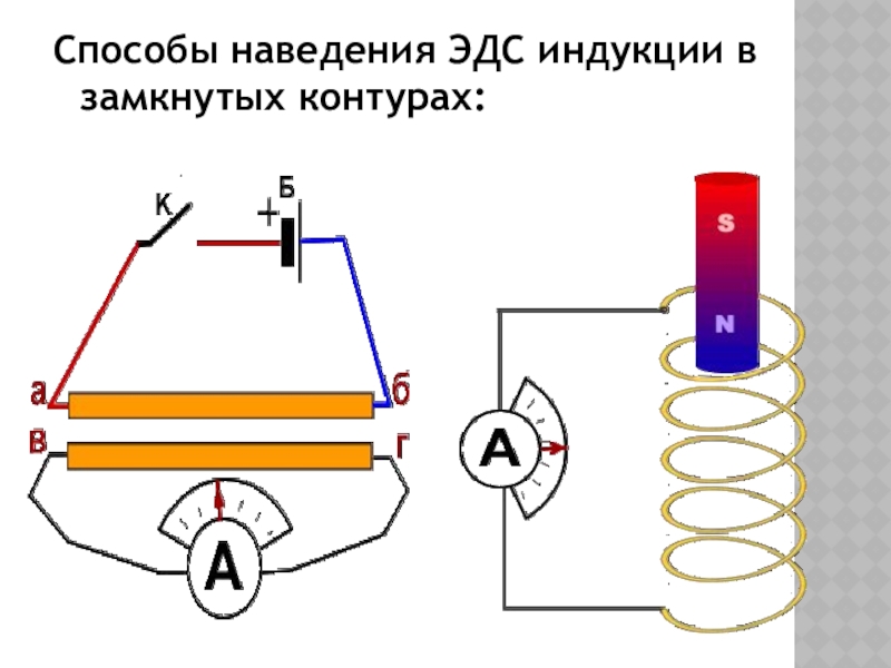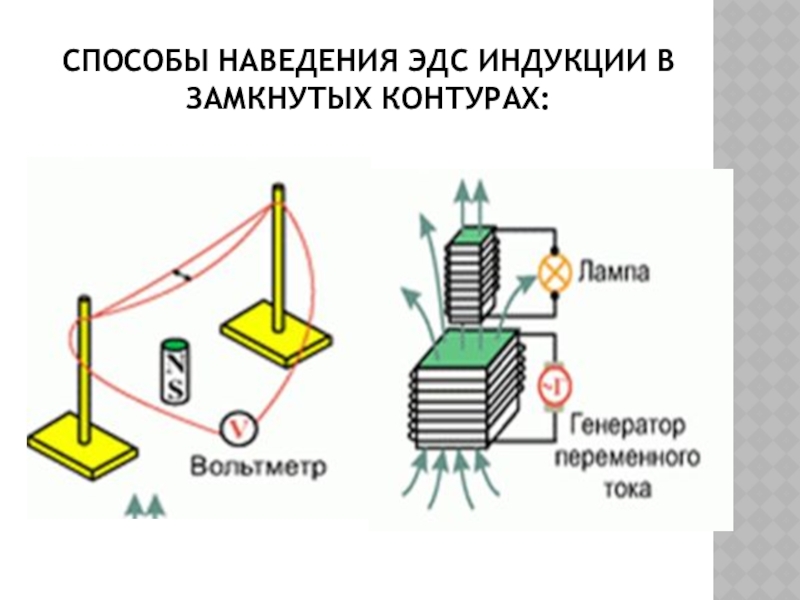 Слайд 36Способы наведения ЭДС индукции в замкнутых контурах: