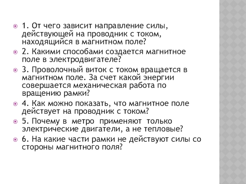 6. На какие части рамки не действуют силы со стороны магнитного поля?