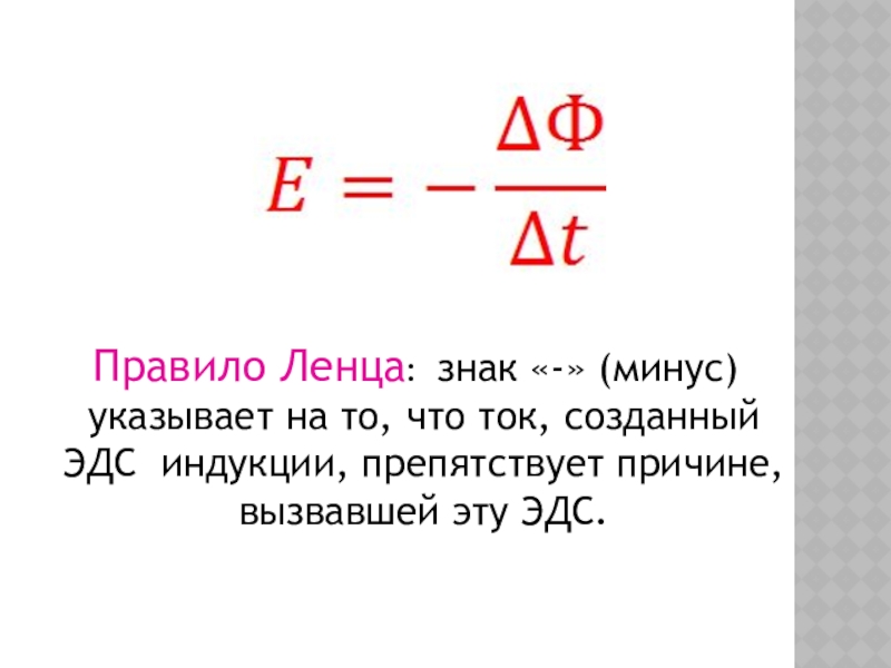 Слайд 40 Правило Ленца: знак «-» (минус) указывает на то, что ток,