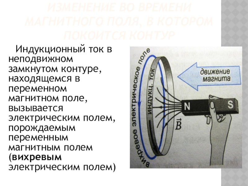 неподвижном замкнутом контуре, находящемся в переменном магнитном поле, вызывается электрическим полем, порождаемым переменным магнитным полем (вихревым электрическим полем)