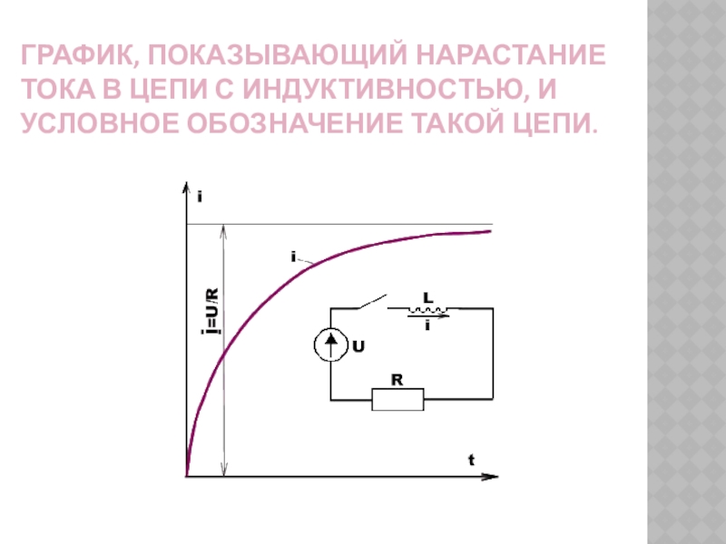 График, показывающий нарастание тока в цепи с индуктивностью, и условное обозначение