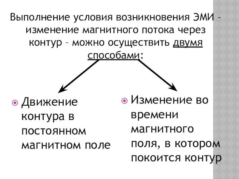 Слайд 38Выполнение условия возникновения ЭМИ – изменение магнитного потока через контур –