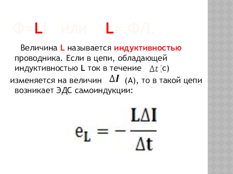 называется индуктивностью проводника. Если в цепи, обладающей индуктивностью L ток в течение (с)