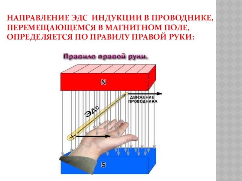 Слайд 44Направление ЭДС индукции в проводнике, перемещающемся в магнитном поле, определяется по