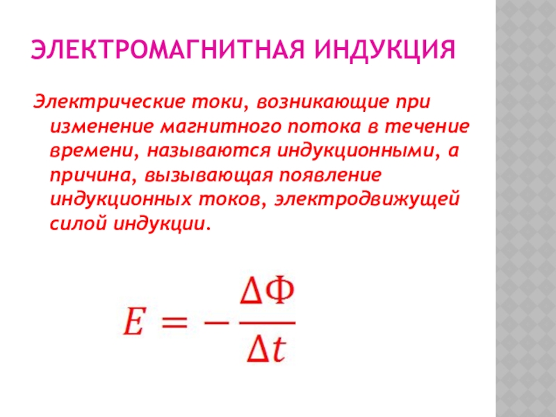 Слайд 39Электрические токи, возникающие при изменение магнитного потока в течение времени, называются