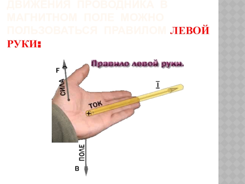 Слайд 14Для определения направления движения проводника в магнитном поле можно пользоваться правилом