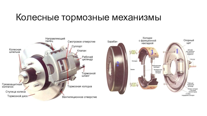из тормозных механизмов, которые обеспечивают затормаживание колес