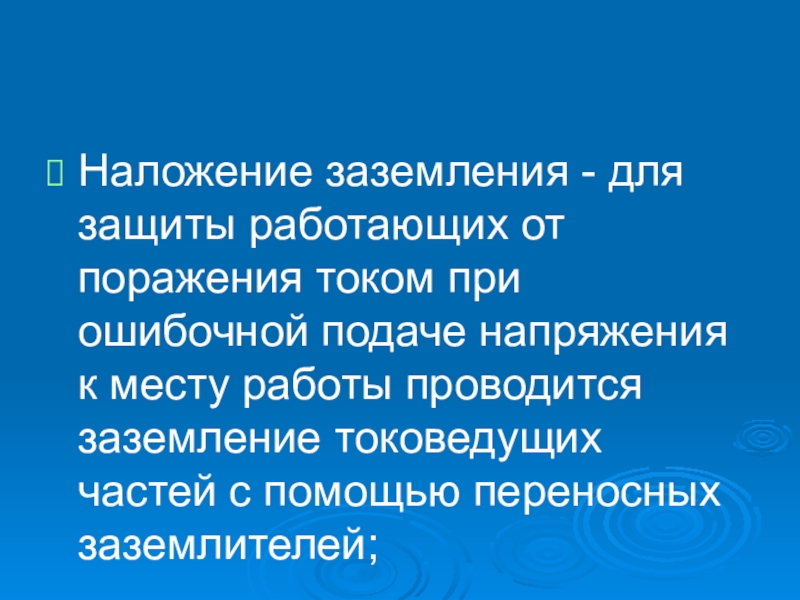 подаче напряжения к месту работы проводится заземление токоведущих частей с помощью переносных заземлителей;