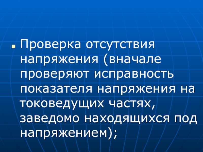 Проверка отсутствия напряжения (вначале проверяют исправность показателя напряжения на токоведущих частях,