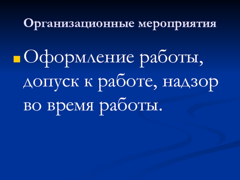 Организационные мероприятияОформление работы, допуск к работе, надзор во время работы.
