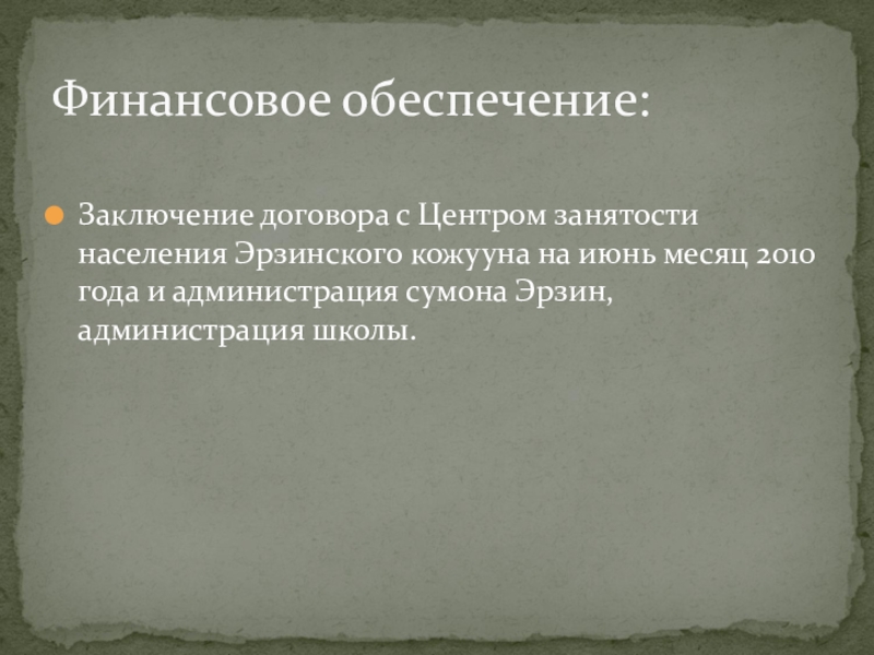 Финансовое обеспечение: