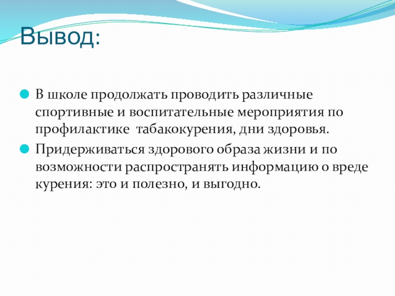 Придерживаться здорового образа жизни и по возможности распространять информацию о вреде курения: это и полезно, и выгодно.