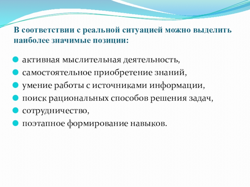 Слайд 11В соответствии с реальной ситуацией можно выделить наиболее значимые позиции: