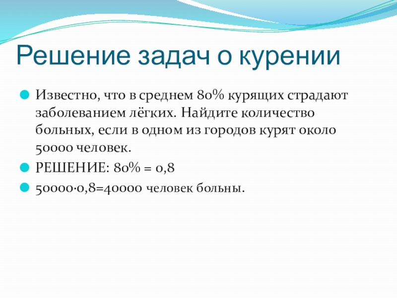 лёгких. Найдите количество больных, если в одном из городов курят около 50000 человек.