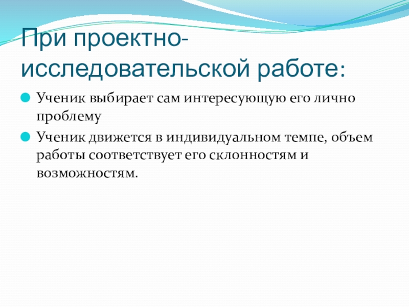 индивидуальном темпе, объем работы соответствует его склонностям и возможностям.