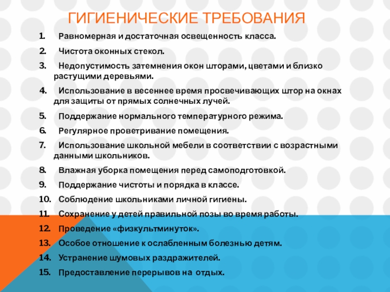 Слайд 8 ГИГИЕНИЧЕСКИЕ ТРЕБОВАНИЯ