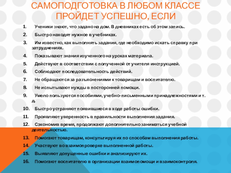 Слайд 14САМОПОДГОТОВКА В ЛЮБОМ КЛАССЕ ПРОЙДЕТ УСПЕШНО, ЕСЛИ