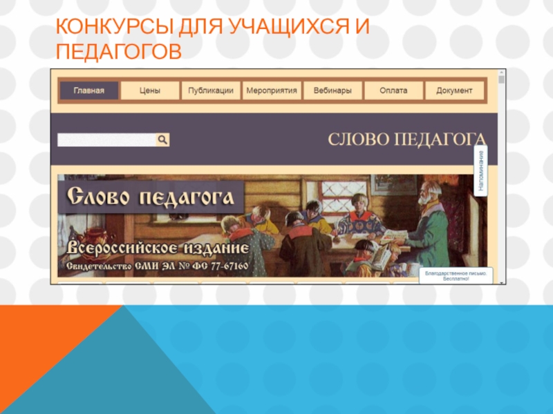 Слайд 25КОНКУРСЫ ДЛЯ УЧАЩИХСЯ И ПЕДАГОГОВ