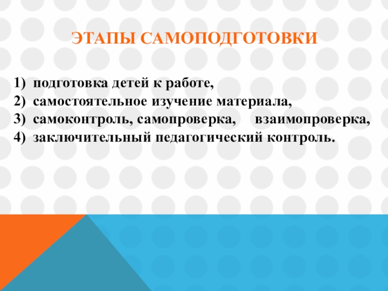 самоподготовку (создаёт ситуацию успеха, снимает страх).